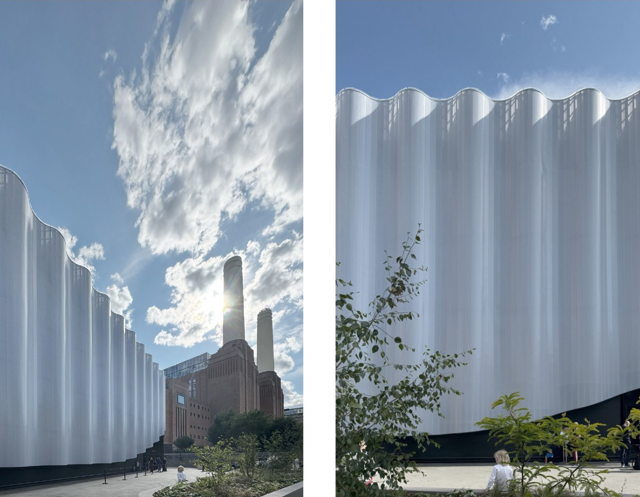 Drawing inspiration from the Battersea Power Station’s iconic white chimneys, we have reimagined their historical significance through a contemporary lens. The facade features a sleek, modern interpretation of these chimneys, seamlessly integrating their architectural language into a forward-looking design. The corrugated surface of the chimneys interacts dynamically with natural light, creating an ever-changing dance of light and shadow that brings the structure to life.