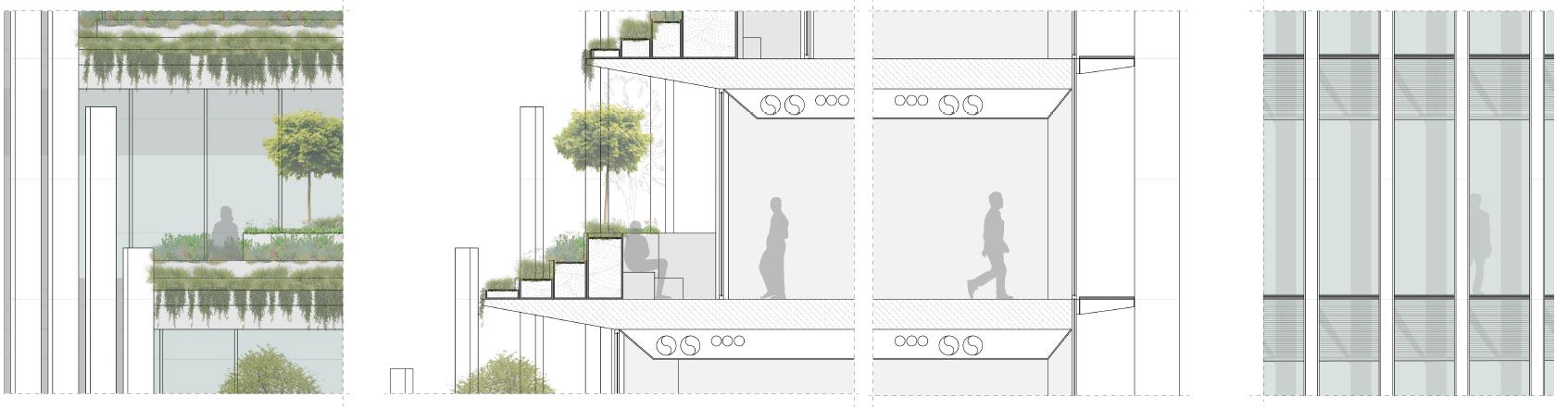 The Bark - its skin is strong but breathable, it protects the building but also lets the light through thanks to its photovoltaic to photocatalytic lamellas.