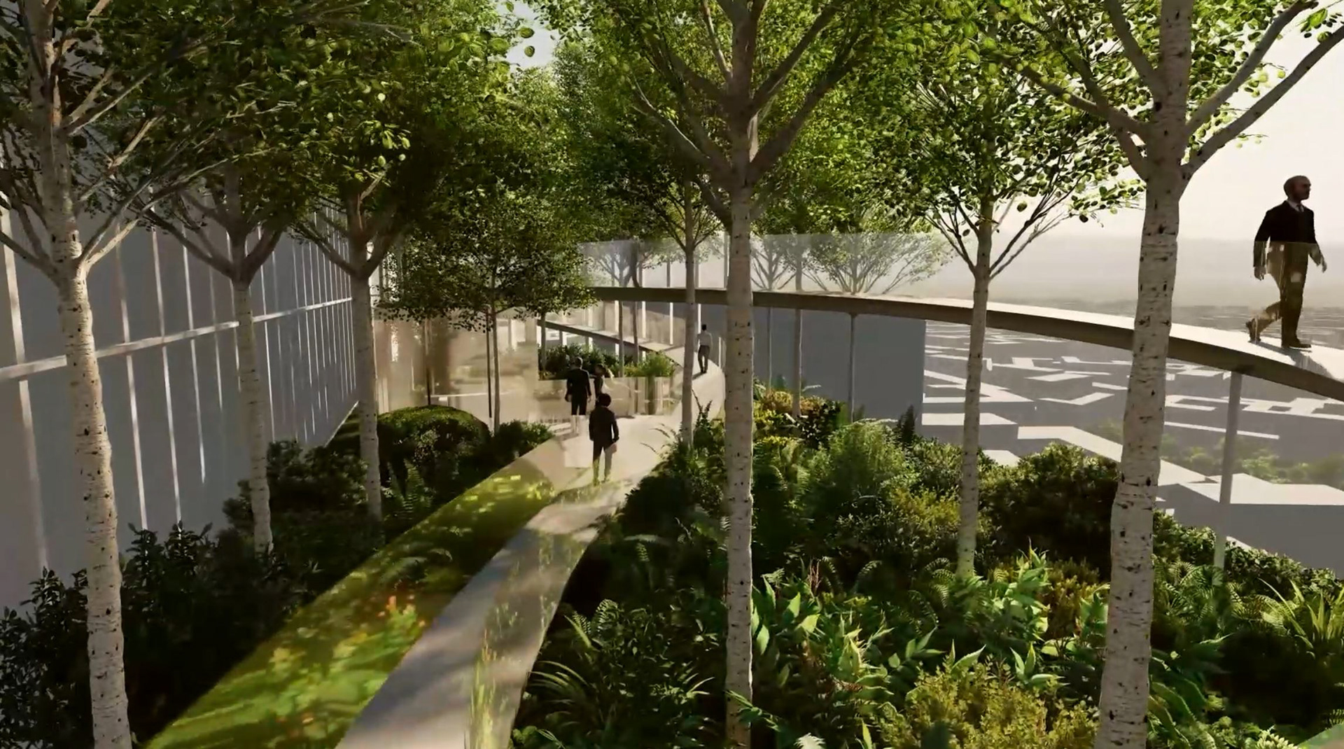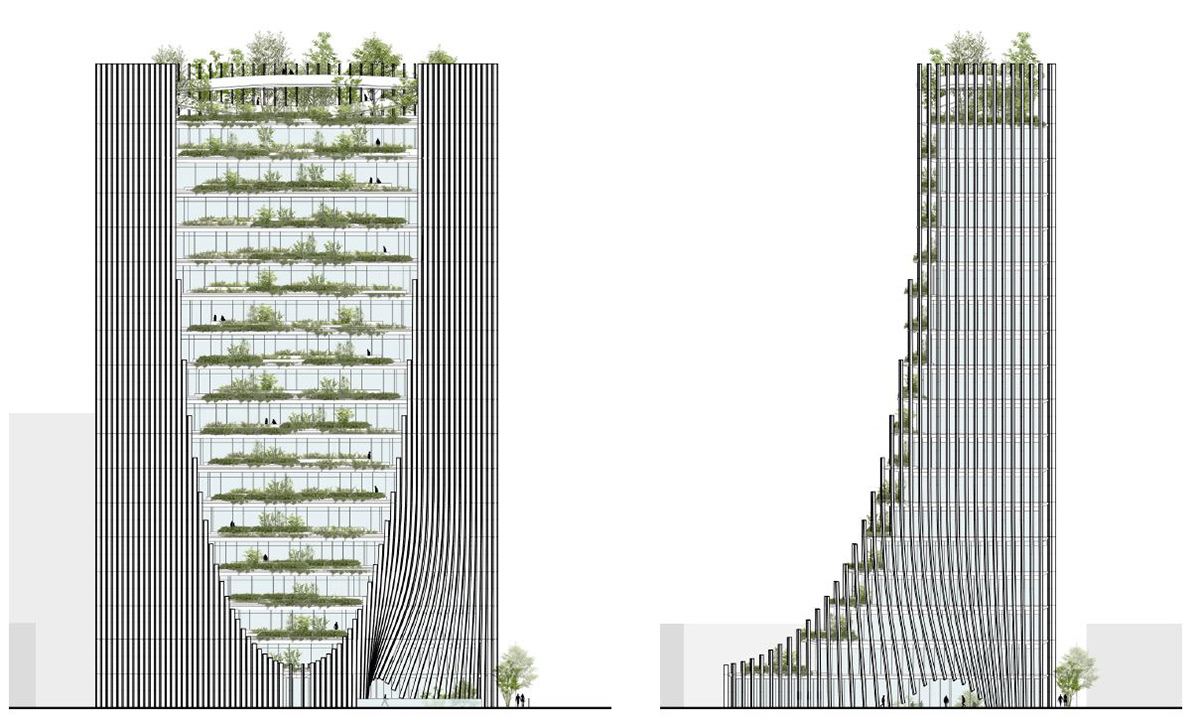 The Canopy - a proper “waterfall” of vegetation connects the city with the sky, generates oxygen, filters light and promotes the well-being of those who work there.